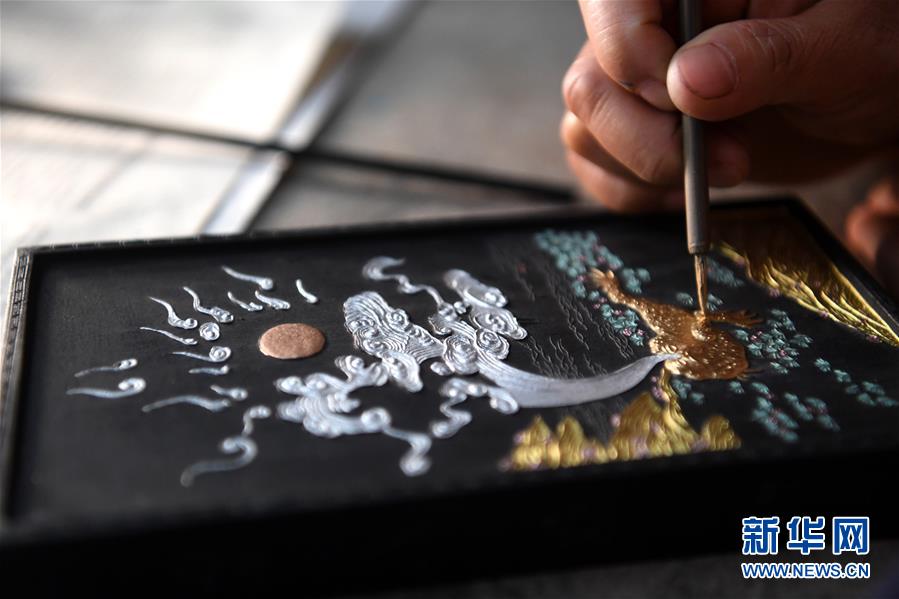 5月20日,安徽歙縣“項氏徽墨”的工人為晾干的墨進行描金。新華社記者劉軍喜攝。