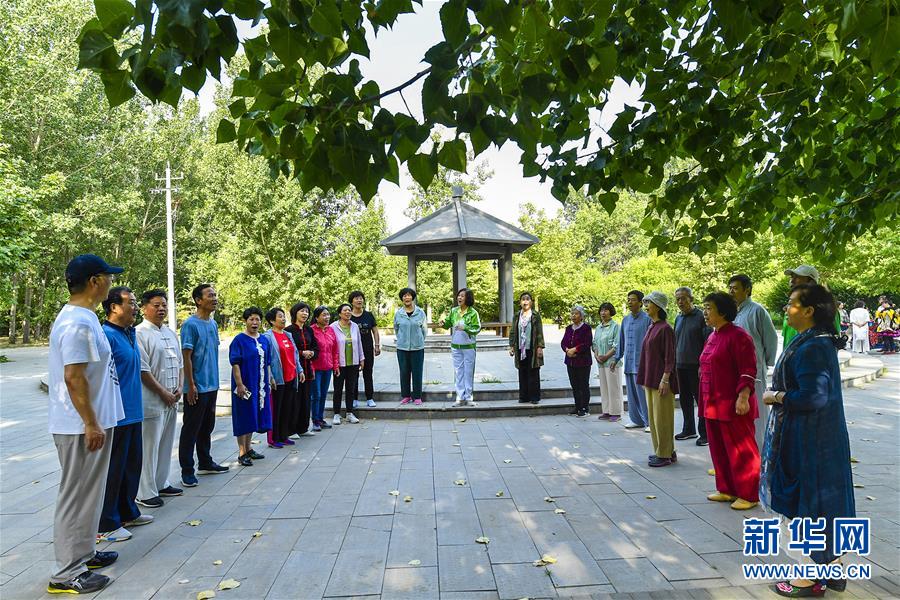 6月5日,市民在文安縣水景公園內(nèi)練習(xí)合唱。近年來,河北省文安縣將植樹造林與城市建設(shè)有機融合,探索“政府引導(dǎo)、企業(yè)運作、多方共贏”的市場化植樹造林新模式,大規(guī)模推進國土綠化,打造人與自然和諧共生的優(yōu)美生態(tài)環(huán)境,構(gòu)筑京津雄綠色屏障。截至目前,該縣森林覆蓋率已經(jīng)達到33%,城區(qū)綠地面積達到36.48%。新華社記者李曉果攝。