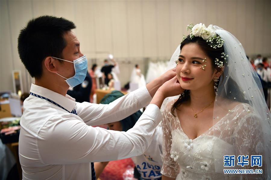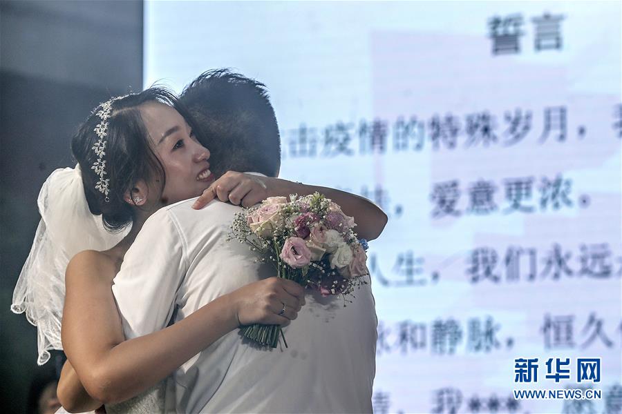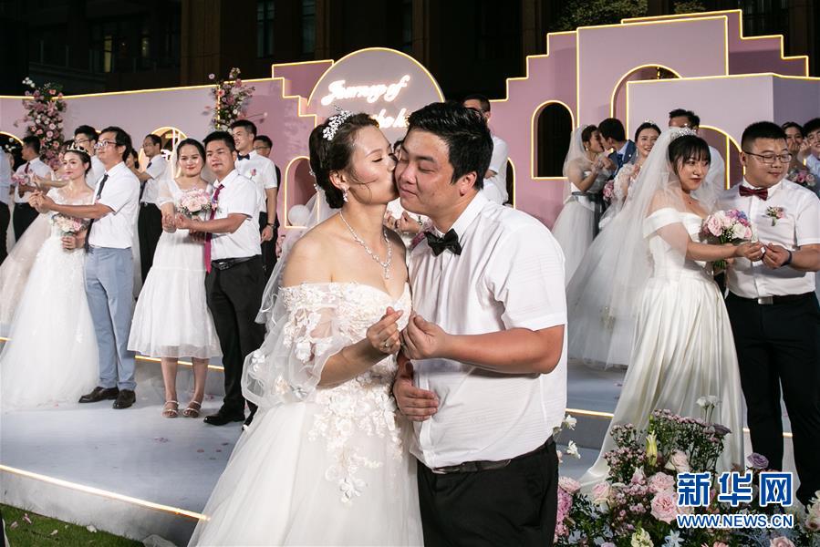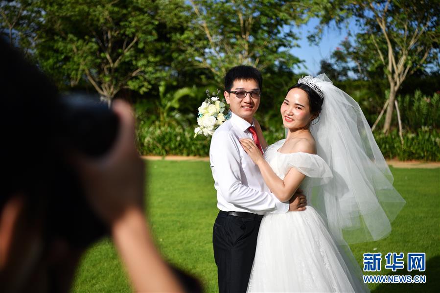6月6日,新人在海南博鰲樂城國(guó)際醫(yī)療旅游先行區(qū)參加集體婚禮。當(dāng)日,來自北京、武漢、廣州等地的30對(duì)新人在海南博鰲樂城國(guó)際醫(yī)療旅游先行區(qū)參加了一場(chǎng)集體婚禮。參加婚禮的部分新人此前因參加湖北的抗疫工作而推遲了婚期。  新華社記者 張麗蕓 攝
