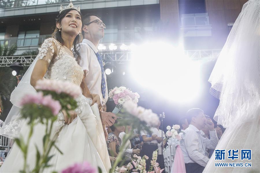 6月6日,新人在海南博鰲樂城國(guó)際醫(yī)療旅游先行區(qū)參加集體婚禮。  新華社記者 張麗蕓 攝