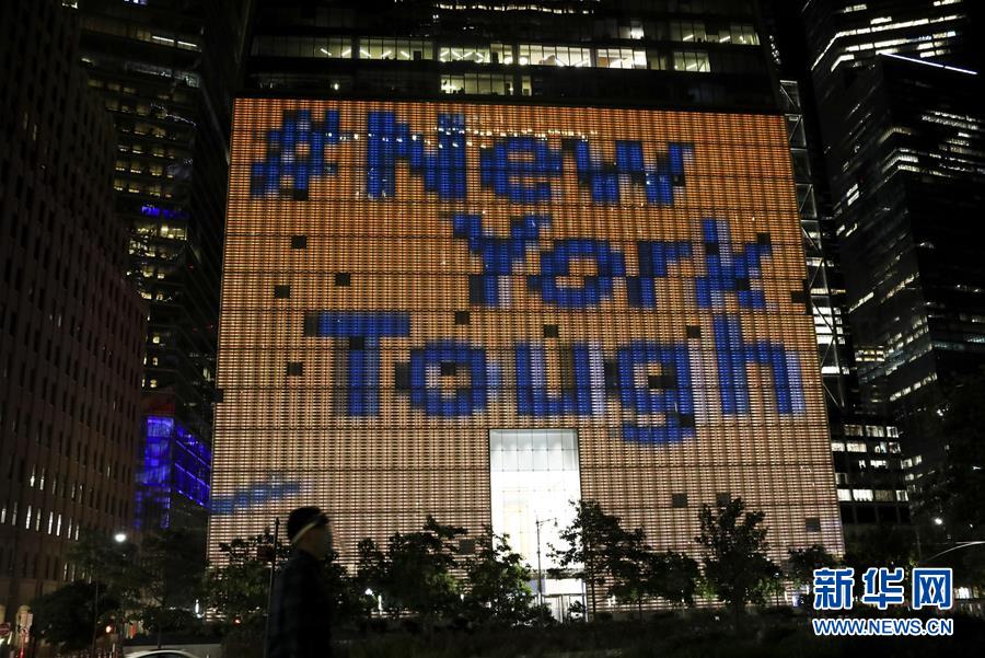 紐約多處建筑點燈致敬民眾團(tuán)結(jié)抗疫