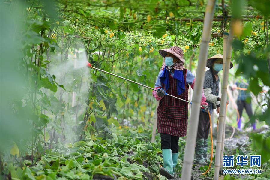 6月9日,在江華瑤族自治縣濤圩鎮(zhèn)鳳尾村蔬菜基地,農(nóng)戶對農(nóng)作物進行噴灑消毒。近日,受連續(xù)強降雨影響,湖南省永州市江華瑤族自治縣遭遇洪澇災(zāi)害,部分農(nóng)田受災(zāi)。目前,江華瑤族自治縣洪水已退,群眾在當?shù)叵嚓P(guān)部門引導(dǎo)下積極開展生產(chǎn)自救。新華社記者陳澤國攝
