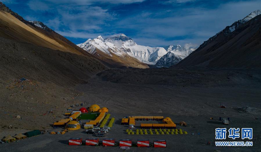 這是海拔6500米的珠峰前進(jìn)營地(無人機(jī)照片,5月22日攝)。從空中俯瞰珠穆朗瑪峰北坡,生機(jī)勃勃的高原濕地、蜿蜒曲折的盤山公路、壯麗秀美的絨布冰川,還有安靜的村莊和熱鬧的登山營地,共同構(gòu)成一幅壯美畫卷。新華社記者晉美多吉攝