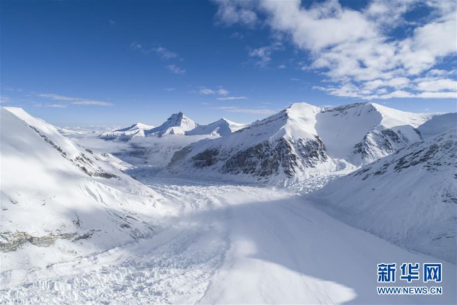 這是珠峰腳下的絨布冰川(無人機(jī)照片,4月30日攝)。從空中俯瞰珠穆朗瑪峰北坡,生機(jī)勃勃的高原濕地、蜿蜒曲折的盤山公路、壯麗秀美的絨布冰川,還有安靜的村莊和熱鬧的登山營地,共同構(gòu)成一幅壯美畫卷。新華社記者普布扎西攝