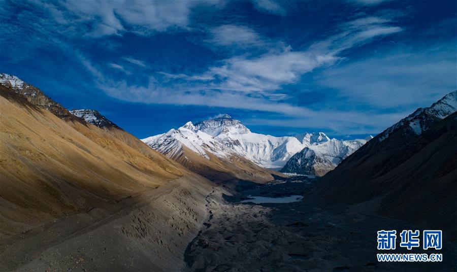 這是珠穆朗瑪峰(無人機(jī)照片,5月25日攝)。從空中俯瞰珠穆朗瑪峰北坡,生機(jī)勃勃的高原濕地、蜿蜒曲折的盤山公路、壯麗秀美的絨布冰川,還有安靜的村莊和熱鬧的登山營地,共同構(gòu)成一幅壯美畫卷。新華社記者普布扎西攝