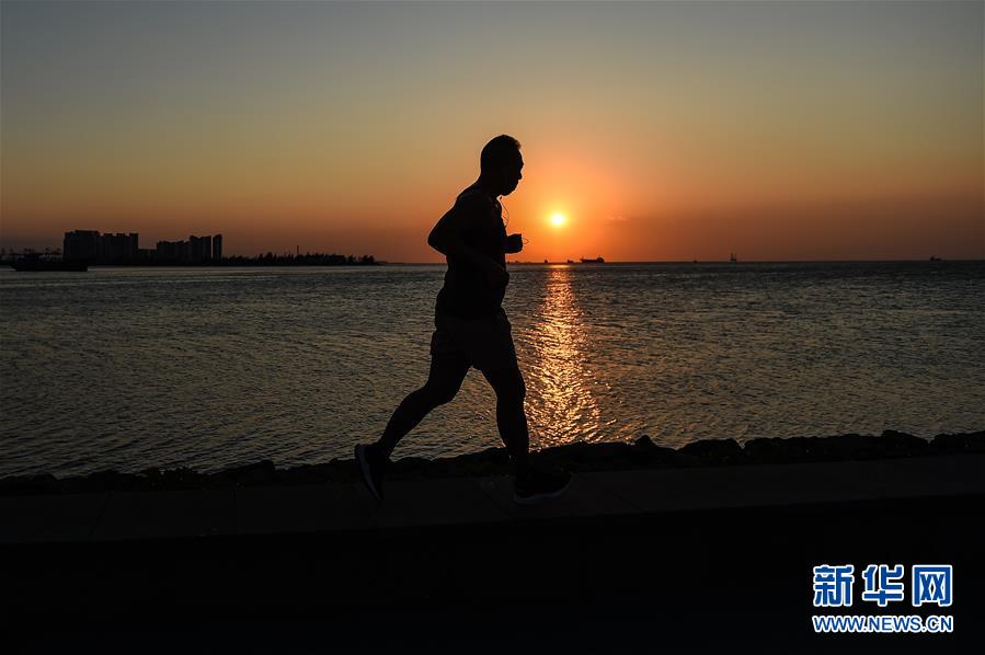 夜幕將至,一位市民在??谑兰o(jì)公園濱海步道跑步(5月15日拍攝)。近年來,夜跑成為越來越多都市人熱衷的健身方式之一。在海南???,每當(dāng)夜幕降臨,“夜跑族”來到??谌f綠園、世紀(jì)公園等夜跑場所跑步,用一身酣暢淋漓的汗水?dāng)[脫白天工作中的壓力,享受跑步帶來的歡愉。新華社記者 蒲曉旭 攝