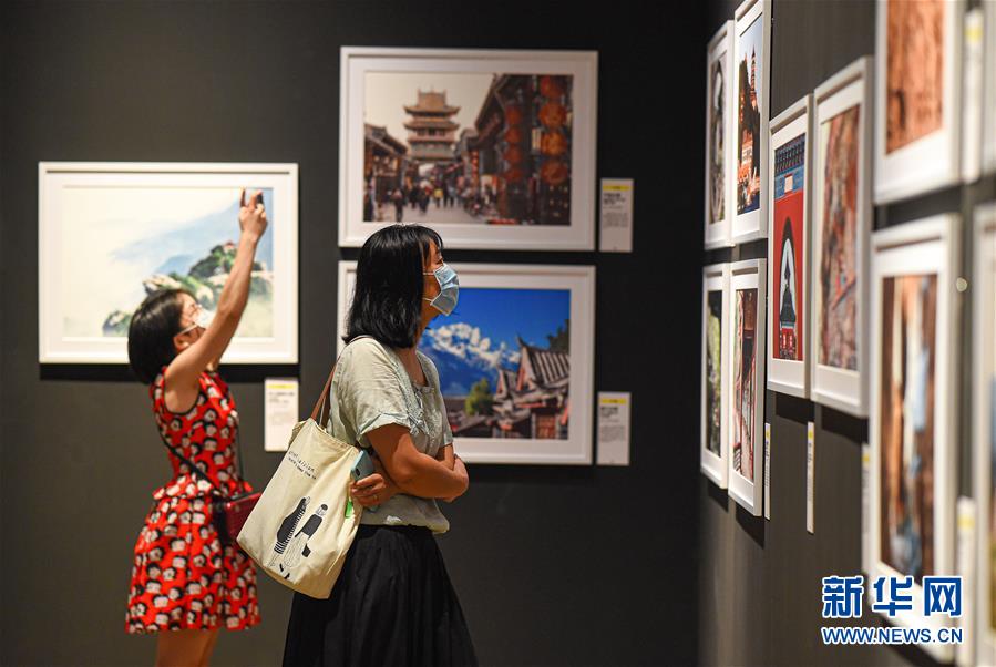 6月13日,觀眾在位于??诘暮D鲜〔┪镳^觀看“地球諧音——世界文化遺產攝影藝術展”。新華社記者蒲曉旭攝。