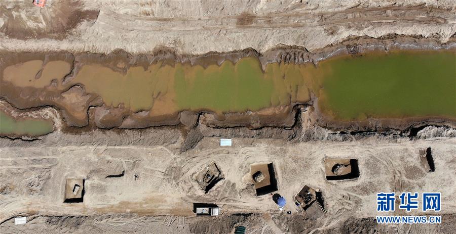 這是6月14日拍攝的山東小清河章丘段考古發(fā)掘現(xiàn)場(無人機照片)。近日,濟南市考古研究所考古工作隊在對小清河章丘段進行考古調(diào)查和勘探時,發(fā)現(xiàn)了13座年代集中在北朝末期至唐朝初期的古墓。新華社記者 王凱 攝