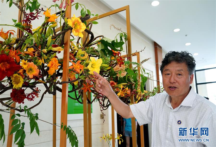 6月13日,上海應(yīng)用技術(shù)大學(xué)生態(tài)技術(shù)與工程學(xué)院的張志國教授在開幕式現(xiàn)場介紹不同品種的萱草花。當(dāng)日,“2020中國(上海)萱草文化節(jié)”在上海應(yīng)用技術(shù)大學(xué)開幕,校園里數(shù)百個品種的萱草花競相綻放,萱草科研推廣、萱草文化交流等多項(xiàng)活動同時舉行。新華社記者 劉穎 攝