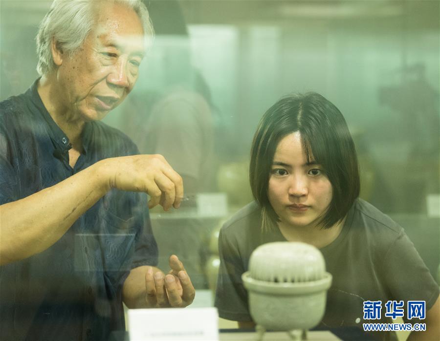 6月17日,在浙江慈溪,聞長(zhǎng)慶向陶瓷愛(ài)好者介紹自己燒制的熏爐。新華社記者 翁忻旸 攝