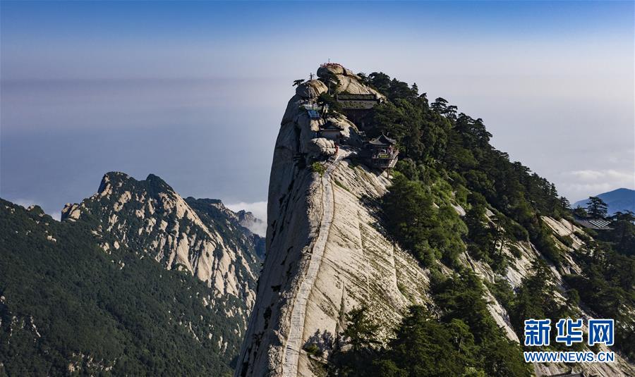 6月18日拍攝的華山西峰(無(wú)人機(jī)照片)。當(dāng)日,西岳華山經(jīng)歷連續(xù)三天暴雨后,迎來(lái)燦爛的陽(yáng)光。新華社記者 陶明 攝