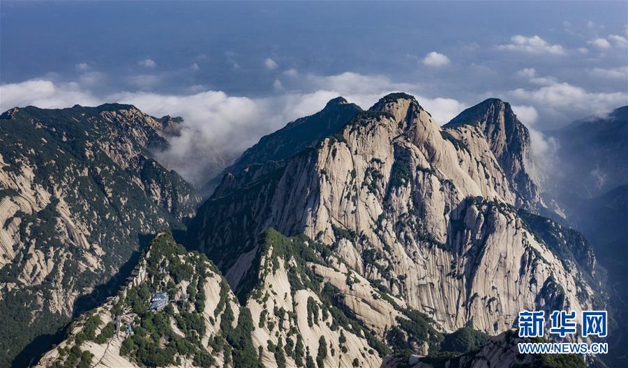 6月18日拍攝的華山北峰(無人機照片)。當(dāng)日,西岳華山經(jīng)歷連續(xù)三天暴雨后,迎來燦爛的陽光。新華社記者 陶明 攝