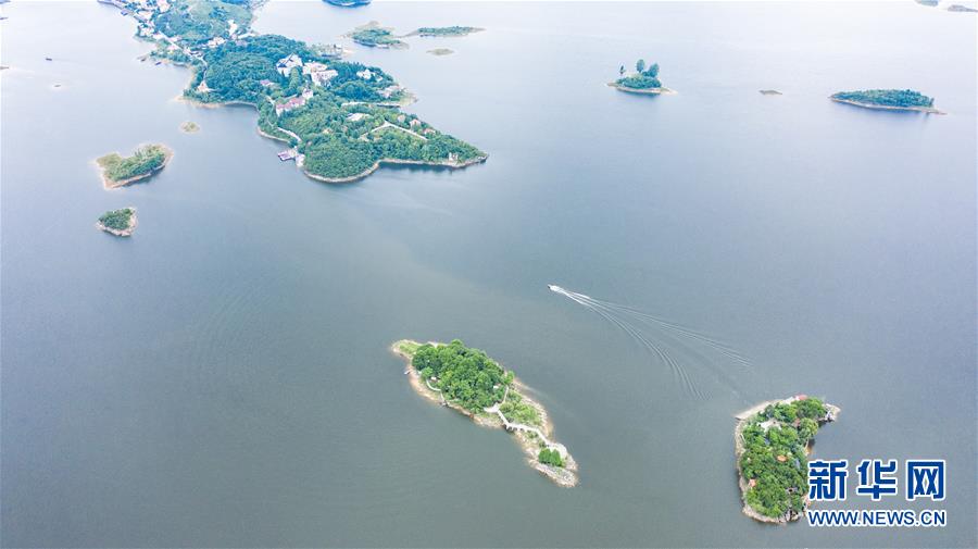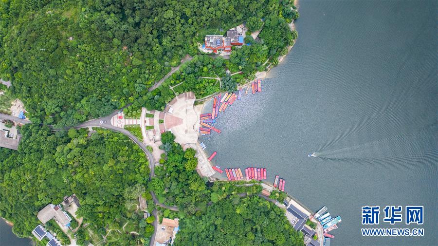 6月21日拍攝的紅楓湖景區(qū)風(fēng)光(無人機(jī)照片)。夏至?xí)r節(jié),貴州省清鎮(zhèn)市紅楓湖景區(qū)草木蒼翠,秀麗的湖光山色吸引不少游客前來游玩。新華社記者陶亮攝