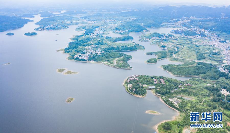 6月21日拍攝的紅楓湖景區(qū)風(fēng)光(無(wú)人機(jī)照片)。夏至?xí)r節(jié),貴州省清鎮(zhèn)市紅楓湖景區(qū)草木蒼翠,秀麗的湖光山色吸引不少游客前來(lái)游玩。新華社記者陶亮攝