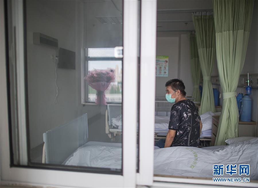 6月17日,胡定江在病房等待出院,窗臺的鮮花是他準備在出院時送給醫(yī)護人員的。用過ECMO(人工膜肺)等設備,經(jīng)過多省市專家的聯(lián)合救治,在院100多天,先后經(jīng)歷了ICU、過渡病房、隔離病房、普通病房的40歲新冠肺炎康復患者胡定江,目前康復良好,經(jīng)專家研判,于6月17日出院。新華社記者肖藝九攝