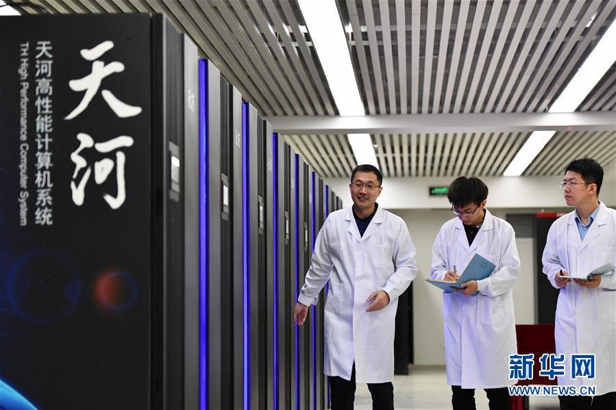 工作人員在國家超級計算天津中心“天河三號”原型機機房內巡查(2019年4月24日攝)。新華社記者李然攝