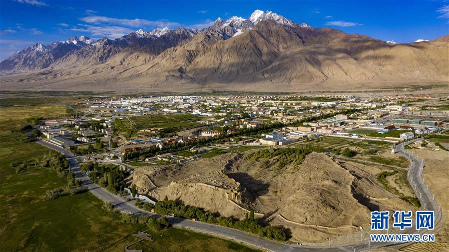 位于帕米爾高原上的新疆塔什庫爾干塔吉克自治縣縣城(6月10日攝,無人機(jī)照片)。新華社記者胡虎虎攝