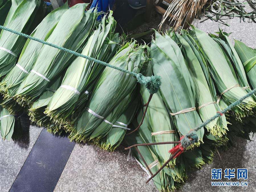 這是湖南桑植縣出產(chǎn)的成捆分級粽葉(6月16日攝)。新華社記者王昕怡攝