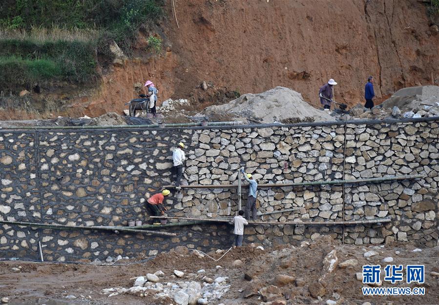 在廣西融水苗族自治縣香粉鄉(xiāng)雨卜村,工人在修筑旅游公路(2016年11月17日攝)。新華社記者黃孝邦攝