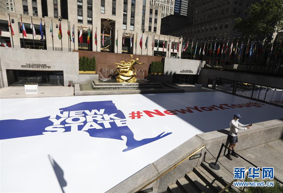 6月22日,在美國(guó)紐約洛克菲勒中心,一名男子在寫有“紐約堅(jiān)強(qiáng)”字樣的廣場(chǎng)自拍。美國(guó)約翰斯·霍普金斯大學(xué)22日發(fā)布的新冠疫情最新統(tǒng)計(jì)數(shù)據(jù)顯示,美國(guó)累計(jì)死亡病例超過(guò)12萬(wàn)例。新華社記者王迎攝