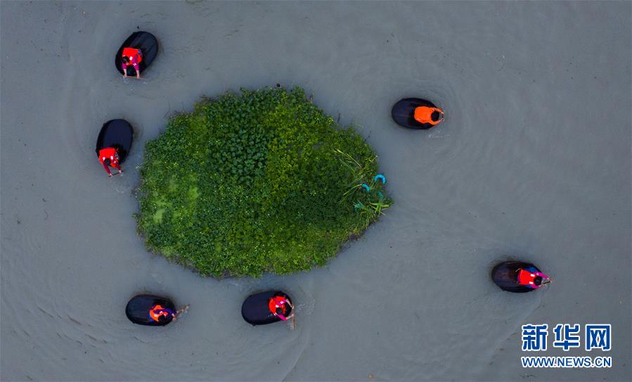6月23日,東林鎮(zhèn)村民劃著菱桶采收荷花和蓮蓬(無人機(jī)照片)。當(dāng)日,浙江省湖州市東林鎮(zhèn)在泉心村荷花池舉辦“慶端午劃菱桶”趣味活動。村民們劃著菱桶在水面上你追我趕,同時(shí)采收荷花和蓮蓬,呈現(xiàn)出水鄉(xiāng)特有的端午節(jié)日氛圍。在河網(wǎng)密布的東林鎮(zhèn),菱桶是水鄉(xiāng)家家戶戶都有的一種傳統(tǒng)水上勞動工具,村民在捕魚、采菱、采荷時(shí)都要用到。新華社記者徐昱攝