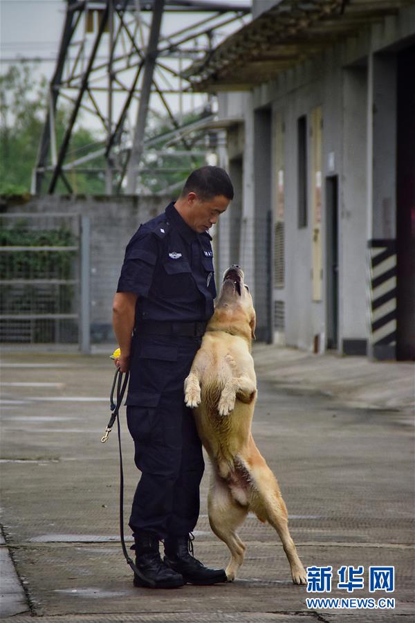 6月24日,訓導員周吉榮調教緝毒犬“多多”。新華社記者 鄭夢雨 攝