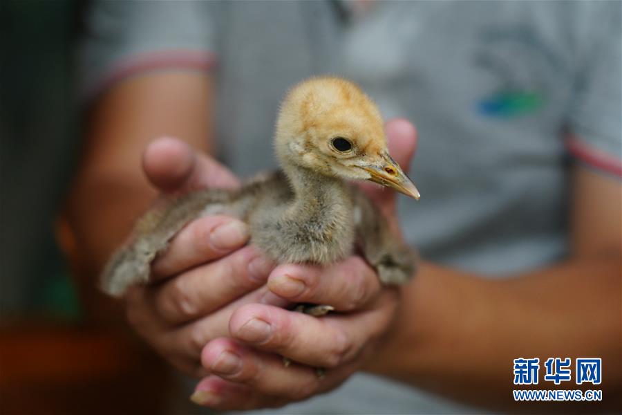 6月29日拍攝的蓑羽鶴寶寶。新華社記者周密攝