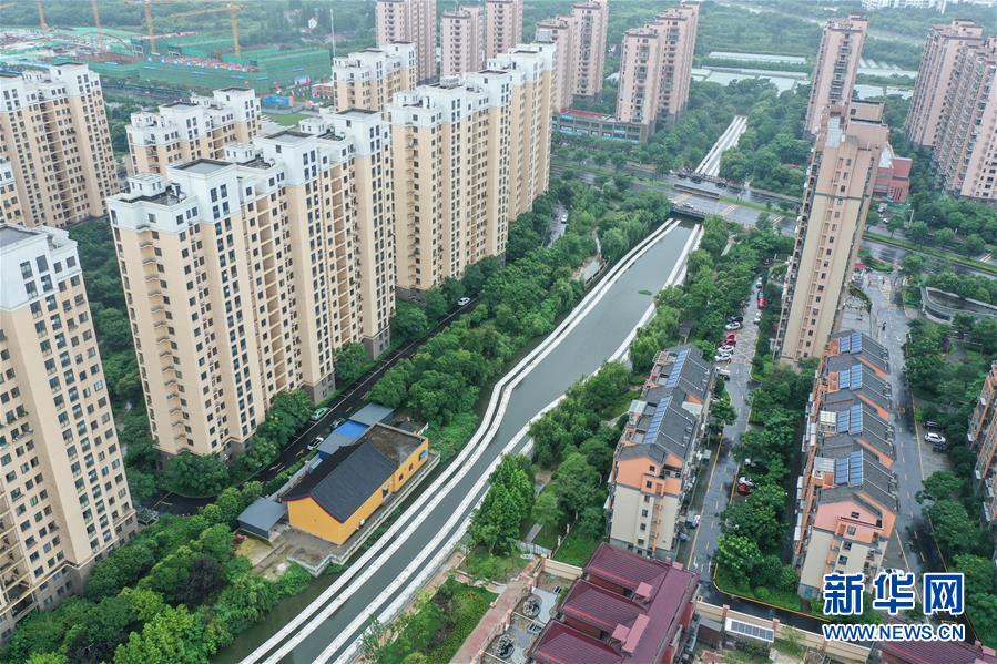 6月29日在吳興區(qū)湖東街道拍攝的“水上稻田”(無人機照片)。今年以來,浙江湖州吳興區(qū)湖東街道開始在轄區(qū)河道大規(guī)模推廣“水上稻田”新型農(nóng)業(yè)項目,利用浮島進行特種水稻種植,既能凈化水體,又能產(chǎn)出生態(tài)稻谷?!八系咎铩鳖A計在11月實現(xiàn)收割。新華社記者翁忻旸攝