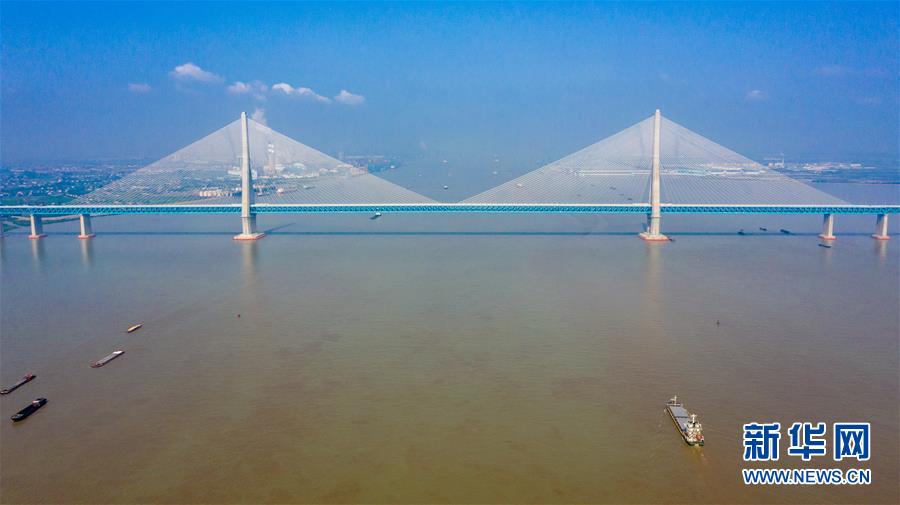滬蘇通長(zhǎng)江公鐵大橋(6月30日攝,無(wú)人機(jī)全景拼接照片)。即將于7月1日通車的滬蘇通長(zhǎng)江公鐵大橋北起江蘇南通,南至江蘇張家港,公鐵合建跨江正橋全長(zhǎng)5827米,為集合高速公路、客貨混線鐵路、高速鐵路的“三合一”過(guò)江通道,建成通車后將有效促進(jìn)長(zhǎng)三角城市群跨江融合、協(xié)同發(fā)展。新華社記者李博攝