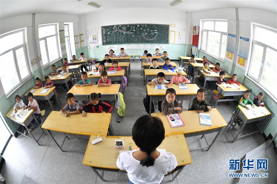寧夏銀川市永寧縣閩寧鎮(zhèn)原隆村原隆小學,一年級的孩子們在上課(2019年9月3日攝)。新華社記者王鵬攝