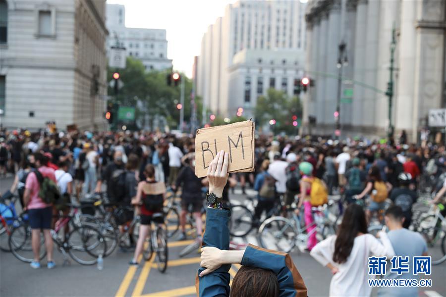 6月30日,人們在美國紐約市政廳附近參加抗議活動。由美國明尼蘇達州明尼阿波利斯市非裔男子弗洛伊德遭白人警察暴力執(zhí)法而死一事引發(fā)的各種抗議活動仍在紐約持續(xù)進行。新華社記者王迎攝