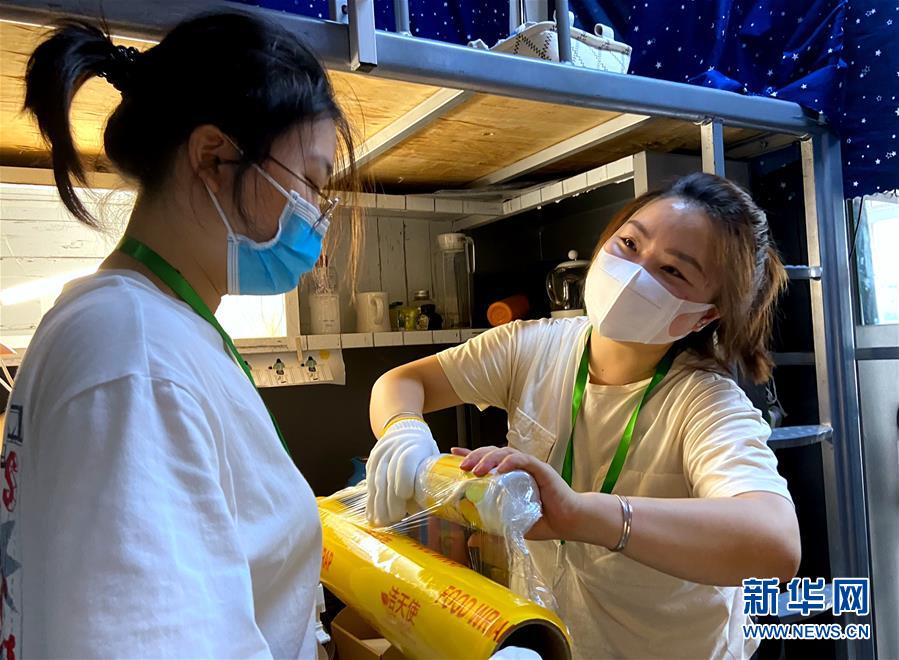7月1日,在北理工學(xué)生宿舍,兩名輔導(dǎo)員在為畢業(yè)生打包行李。6月29日起,北京理工大學(xué)教職員工開始為2020屆6000多名需要打包的畢業(yè)生集中進(jìn)行行李打包、郵寄和留置物品存放工作。經(jīng)過提前與畢業(yè)生“一對一”溝通,老師們耐心細(xì)致地通過手機(jī)“直播”打包行李的全過程,與每一個同學(xué)認(rèn)真核對其個人物品,細(xì)心收納擺放、整理密封、搬運(yùn)寄送,讓不能返校的畢業(yè)生們安心、放心。新華社記者魏夢佳攝