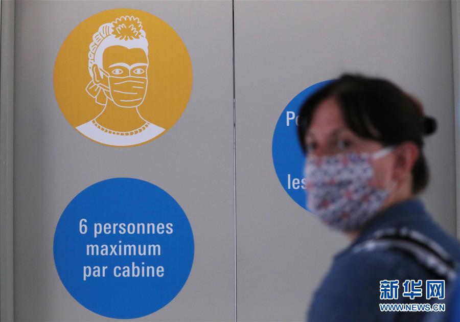 7月1日,法國(guó)巴黎蓬皮杜藝術(shù)中心的電梯上貼著“請(qǐng)佩戴口罩”和“最多6人乘梯”的標(biāo)識(shí)。因新冠疫情關(guān)閉的法國(guó)巴黎蓬皮杜藝術(shù)中心于7月1日重新開(kāi)門迎客。目前,中心只開(kāi)放6層的臨時(shí)展區(qū)和4、5層的現(xiàn)代藝術(shù)常設(shè)展區(qū)。參觀者需提前網(wǎng)上預(yù)約參觀時(shí)段,11歲以上參觀者須佩戴口罩,參觀過(guò)程中保持安全距離。新華社記者高靜攝
