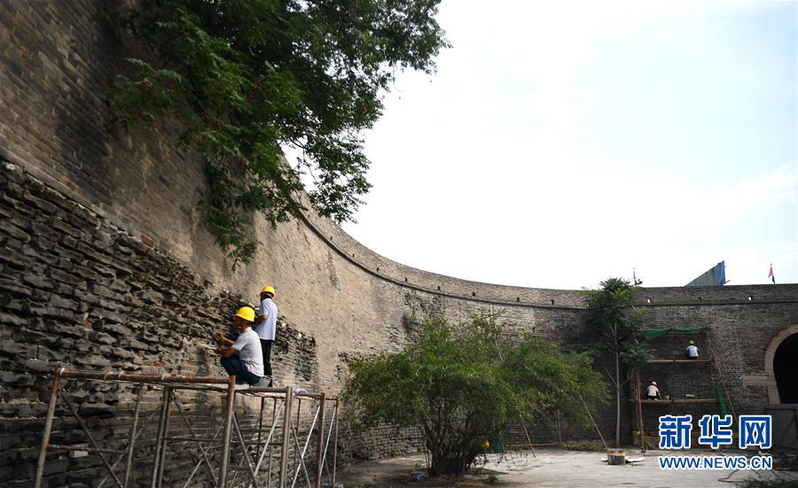 7月2日,工作人員在永年廣府古城修繕城墻。經(jīng)國家文物局和河北省文物局批準,河北永年廣府古城修繕工程已全面啟動。在文物專家全程參與下,按照“不改變文物原狀”原則進行修繕,預計2021年4月底完工。永年廣府古城擁有華北地區(qū)保存最完整的古城墻,現(xiàn)為全國重點文物保護單位。新華社記者王曉攝