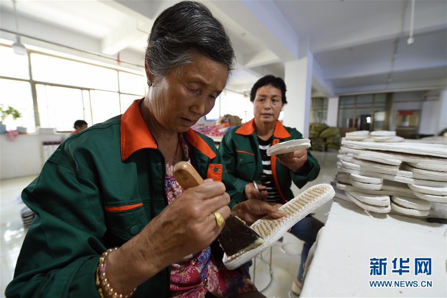 7月2日,臨夏縣百利布鞋加工農(nóng)民專業(yè)合作社員工在加工布鞋。甘肅省臨夏回族自治州臨夏縣將布鞋加工定為重點扶持發(fā)展的產(chǎn)業(yè),采用“政府+公司+貧困戶”的產(chǎn)業(yè)扶貧模式,由政府主導、企業(yè)出資,在貧困村建設“扶貧車間”,吸納貧困群眾從事布鞋加工產(chǎn)業(yè)增加收入。截至2019年底,當?shù)夭夹庸て髽I(yè)和加工戶遍及近百個行政村,從業(yè)人員達到4000多人,累計生產(chǎn)布鞋600多萬雙,實現(xiàn)銷售收入2.32億元。新華社記者范培珅攝