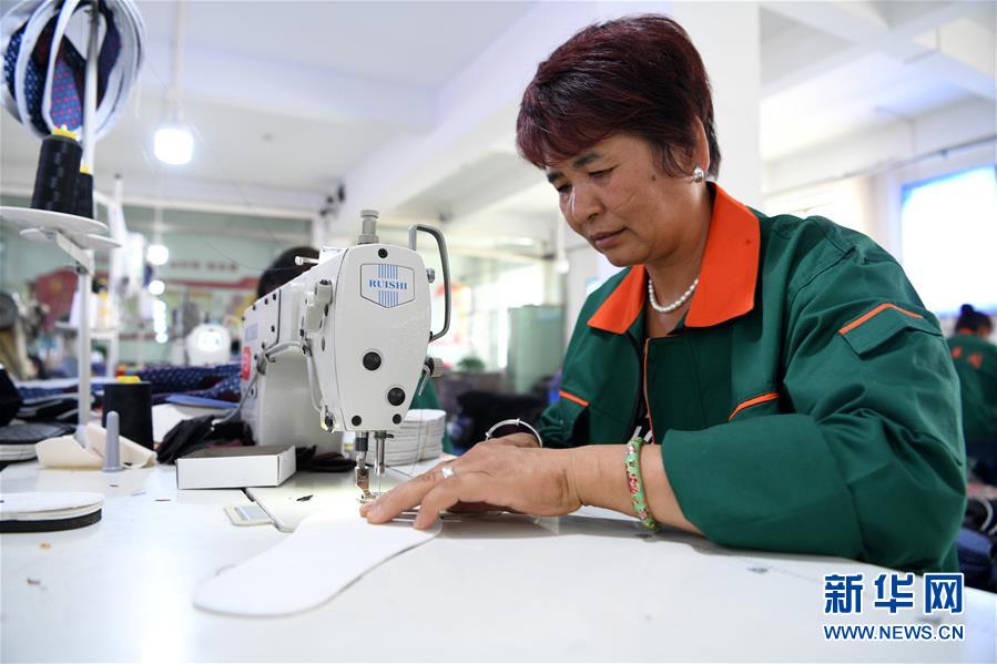7月2日,臨夏縣百利布鞋加工農(nóng)民專業(yè)合作社員工在加工布鞋。甘肅省臨夏回族自治州臨夏縣將布鞋加工定為重點(diǎn)扶持發(fā)展的產(chǎn)業(yè),采用“政府+公司+貧困戶”的產(chǎn)業(yè)扶貧模式,由政府主導(dǎo)、企業(yè)出資,在貧困村建設(shè)“扶貧車間”,吸納貧困群眾從事布鞋加工產(chǎn)業(yè)增加收入。截至2019年底,當(dāng)?shù)夭夹庸て髽I(yè)和加工戶遍及近百個行政村,從業(yè)人員達(dá)到4000多人,累計生產(chǎn)布鞋600多萬雙,實(shí)現(xiàn)銷售收入2.32億元。新華社記者范培珅攝