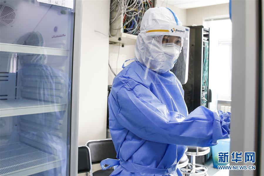7月3日,中日友好醫(yī)院檢驗(yàn)科新冠核酸檢測實(shí)驗(yàn)室的檢驗(yàn)人員張鑫在實(shí)驗(yàn)室內(nèi)查看樣本。新華社記者張玉薇攝