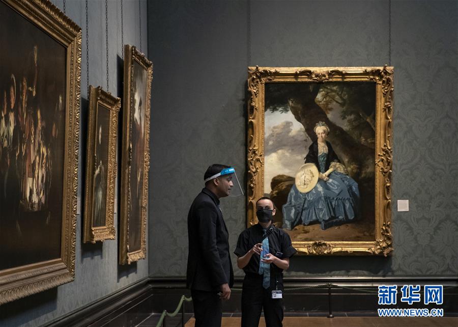 7月4日,工作人員在英國(guó)國(guó)家美術(shù)館內(nèi)交談。新華社記者韓巖攝
