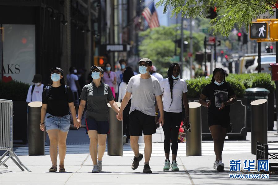 7月4日,人們戴著口罩走在美國紐約第五大道。當日是美國獨立日,美國多地疫情仍面臨嚴峻形勢。美國約翰斯·霍普金斯大學實時統(tǒng)計數(shù)據(jù)顯示,美國累計新冠確診病例4日已超過280萬例。新華社記者王迎攝