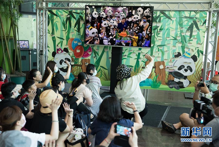 7月6日,在臺北市立動物園,大熊貓“圓仔”的臺北粉絲和四川粉絲互致問候,共同慶祝“圓仔”生日。新華社記者金立旺攝