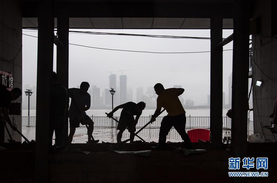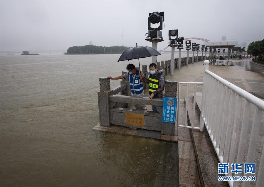 7月6日,工作人員在武漢龍王廟觀察水情。記者6日從武漢市防汛抗旱指揮部辦公室獲悉,5日以來(lái),武漢遭暴雨襲擊,全市多處路段漬水。至6日4時(shí),長(zhǎng)江漢口站超設(shè)防水位1.79米,漢江新溝站超警戒水位0.01米。鑒于當(dāng)前水雨汛情和漬澇情況,武漢市從6日5時(shí)起,將排澇應(yīng)急響應(yīng)級(jí)別提升至Ⅱ級(jí);從6時(shí)30分起,將防汛應(yīng)急響應(yīng)級(jí)別提升至Ⅱ級(jí)。新華社記者肖藝九攝