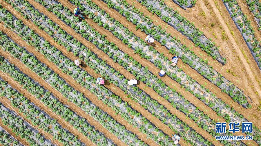 7月6日,貴州省六枝特區(qū)郎岱鎮(zhèn)青龍村村民在田地里勞作(無(wú)人機(jī)照片)。當(dāng)日是小暑節(jié)氣,貴州省各地農(nóng)民不誤農(nóng)時(shí),忙碌在田間地頭。新華社記者陶亮攝