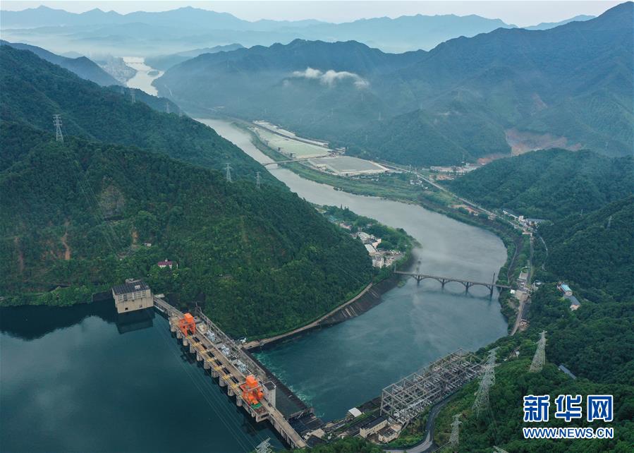 7月6日拍攝的新安江水庫(無人機照片)。受連續(xù)強降雨影響,位于浙江建德的新安江水庫水位持續(xù)上漲。據(jù)浙江省水利廳發(fā)布的數(shù)據(jù),截至7月6日14時,水庫水位上漲至106.54米,超汛限水位0.04米,且仍在上漲中。為確保水庫防洪安全、合理利用水資源,新安江水庫預計于7月7日開啟泄洪閘泄洪。新華社記者翁忻旸攝