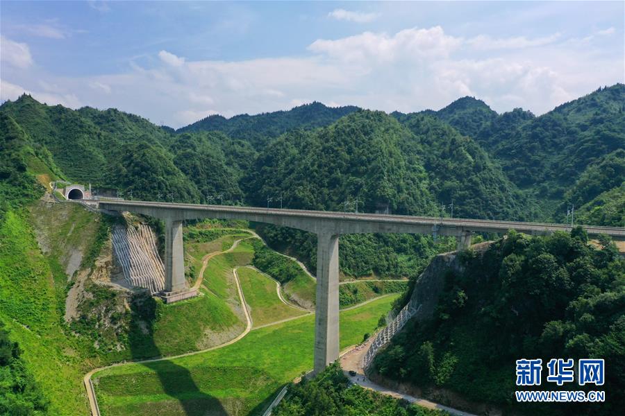 7月6日拍攝的安六鐵路彭家沖一號(hào)大橋(無(wú)人機(jī)照片)。當(dāng)日,新建貴州安六鐵路(安順至六盤水)聯(lián)調(diào)聯(lián)試工作進(jìn)入收尾階段,開通前的各項(xiàng)準(zhǔn)備工作已基本就緒。安六鐵路線路全長(zhǎng)約125公里,設(shè)計(jì)時(shí)速250公里,為國(guó)家I級(jí)雙線客運(yùn)專線。建成投用后,貴陽(yáng)至六盤水的鐵路旅行時(shí)間可從現(xiàn)在的3.5小時(shí)縮短為1小時(shí)左右,貴州省六盤水市將全面接入全國(guó)高鐵網(wǎng)。新華社記者劉續(xù)攝