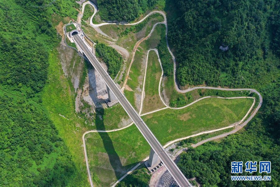 7月6日拍攝的安六鐵路彭家沖一號大橋(無人機照片)。當日,新建貴州安六鐵路(安順至六盤水)聯調聯試工作進入收尾階段,開通前的各項準備工作已基本就緒。安六鐵路線路全長約125公里,設計時速250公里,為國家I級雙線客運專線。建成投用后,貴陽至六盤水的鐵路旅行時間可從現在的3.5小時縮短為1小時左右,貴州省六盤水市將全面接入全國高鐵網。新華社記者劉續(xù)攝