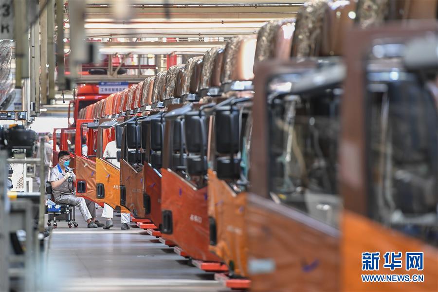 在位于長(zhǎng)春市的一汽解放總裝車間,工人在裝配車輛(6月19日攝)。中國(guó)第一汽車集團(tuán)披露,截至6月30日,集團(tuán)上半年共計(jì)生產(chǎn)整車162.23萬(wàn)輛,同比增長(zhǎng)1.5%;銷售整車163.09萬(wàn)輛,同比增長(zhǎng)2.3%。新華社記者張楠攝