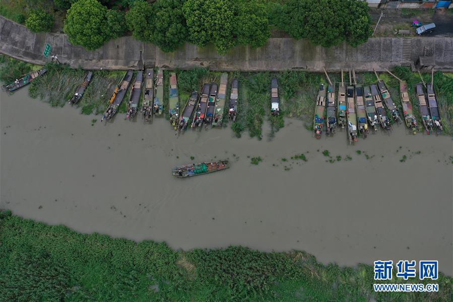 在吳興高新區(qū)幻溇村的避風港,停泊了大批漁船(7月7日攝,無人機照片)。近日,位于浙江北部的湖州市遭遇多輪降雨,東部平原河網(wǎng)普遍超警戒水位,水庫山塘高位運行。7月5日12時30分,湖州市人民政府防汛防旱指揮部將防汛應(yīng)急響應(yīng)提升至Ⅲ級,要求各地密切監(jiān)測汛情,切實做好各項防范工作,確保安全度汛。新華社記者黃宗治攝
