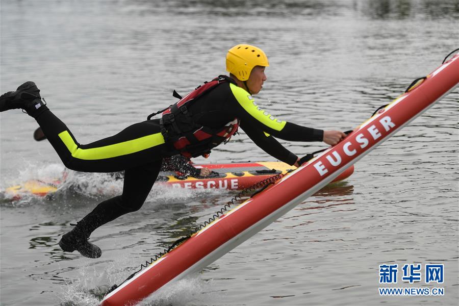 7月7日,吳興區(qū)消防救援大隊隊員在演練水上救援,以備搶險。近日,位于浙江北部的湖州市遭遇多輪降雨,東部平原河網(wǎng)普遍超警戒水位,水庫山塘高位運行。7月5日12時30分,湖州市人民政府防汛防旱指揮部將防汛應急響應提升至Ⅲ級,要求各地密切監(jiān)測汛情,切實做好各項防范工作,確保安全度汛。新華社記者黃宗治攝