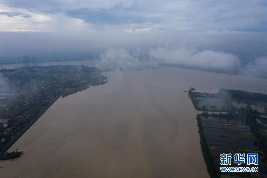 7月8日拍攝的杭州市富陽區(qū)錢塘江流域(無人機(jī)照片)。新華社記者徐昱攝