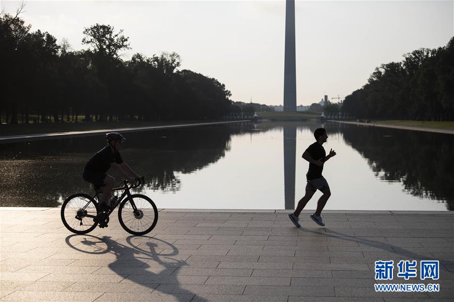7月8日,在美國華盛頓,人們在林肯紀(jì)念堂倒影池旁運(yùn)動健身。美國約翰斯·霍普金斯大學(xué)8日發(fā)布的新冠疫情最新統(tǒng)計數(shù)據(jù)顯示,美國累計確診病例超過300萬例。數(shù)據(jù)顯示,截至美國東部時間8日11時34分(北京時間23時34分),美國累計確診病例3016515例,累計死亡病例131594例。新華社記者劉杰攝